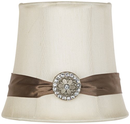 Give a fresh new look to a chandelier or other small fixture with this delightful cream fabric lamp shade. The beautiful cotton/poly blend fabric has a bronze ribbon trim with a sparkling jewel button detail. A quick and easy way to update your decor. Read more customer reviews ...